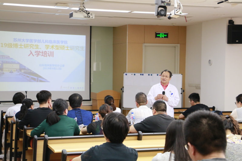 苏州大学2019级博士、全日制学术型硕士研究生于9月7-8日报到入学,我儿科临床医学院共有8名学术型博士、46名临床专业型博士、9名学术型硕士入学。为更好地指导研究生们在未来几年的学习和科研工作,牢固树立求真务实的学术态度,9月12日下午,在总院门诊四楼阶梯教室开展了2019级博士及学术型硕士研究生新生入学培训。