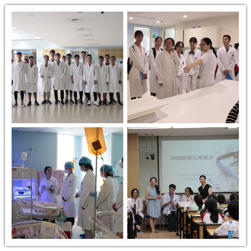 12日和14日两天,学院为新生们安排了丰富的迎新活动,帮助大家了解儿科专业,熟悉儿童医院。通过学院院长王晓东热情洋溢的“大学第一课”,新生们不仅感受到了作为儿科医生肩上的重担,同时也萌发了治病救人的自豪感。在道德讲堂中,大家从“自我反省”、“赏经典”、“崇德礼”、“学楷模”、“诵经典”五个环节中,逐渐体会到了学院老师对大家的殷切期望,希望大家能够“许下初心 一路前行”。学院办公室主任黄洁老师担任了“5+3”一体化新生班主任,向大家全面介绍了学院的发展历程,并寄语学子们在儿童医疗事业蓝图上画出理想的翅膀,振翅翱翔。团委时秋芳书记和17级“爱童协”的学长学姐共同为大家分享了院内和社团志愿者活动,鼓励大家利用课余时间参与其中,在帮助他人的同时学会感恩。查房观摩活动,为新生们提供了走进临床的机会,当穿上白大褂,戴上口罩帽子的一刻,学生们初次体会到了医生的责任感。新生座谈会上,教研室老师以及师兄师姐们从专业学习、课余生活、科研工作等方面,用最诚挚的话语为新生答疑解惑,帮助大家明确目标。两天的时间收获满满,学生在活动中逐渐坚定了做一名儿科医生的信念,对儿科临床医学院及儿童医院产生了浓浓的归属感。