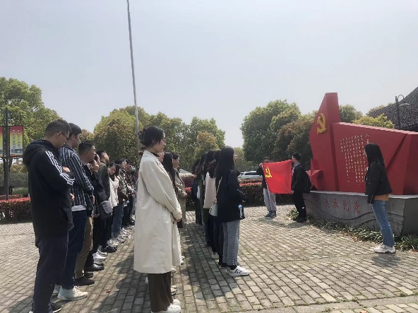 参观完毕后,在辅导员黄筱玥老师的带领下,全体党员佩戴鲜红的党徽,面向鲜艳的党旗,举起右手,庄严宣誓,重温入党誓词,感受自我的坚定决心,接受党旗对心灵的洗涤与净化。