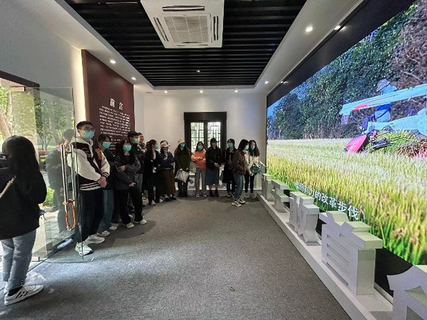 主题党课结束后,党员们在志愿者的引导下,参观了“乡村振兴学堂”,通过文字、图片、视频等形式,了解感受了苏州持续深入学习贯彻习近平新时代中国特色社会主义思想的具体实践和发展成果。