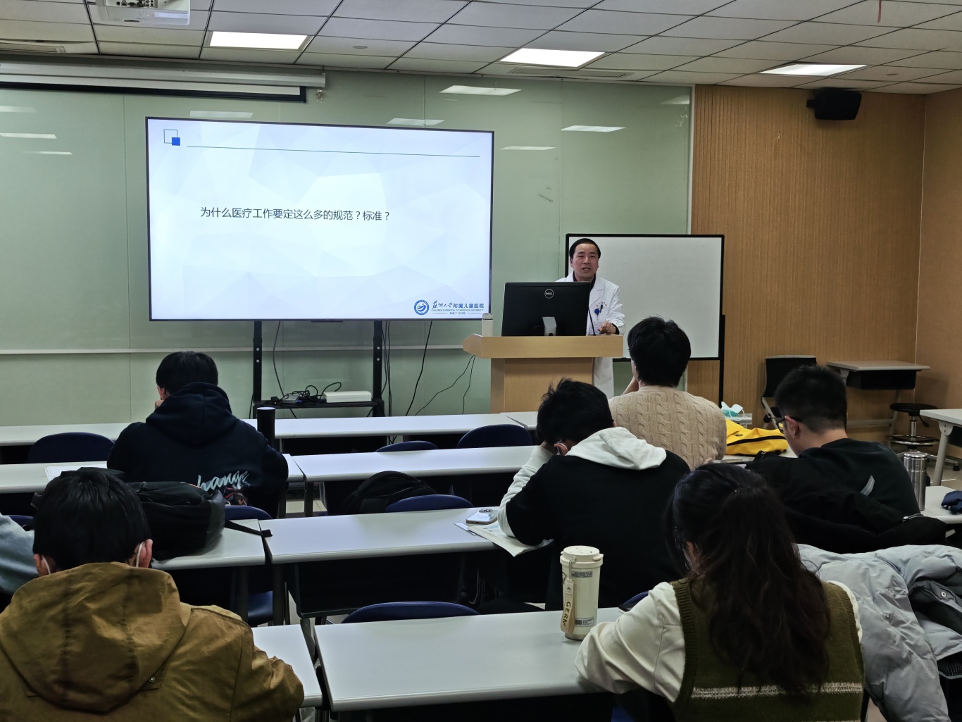 为树立医疗职业精神,培养医学人文素养,12月16日下午,在园区儿童医院2号教室,学生党总支书记、儿科临床医学院办公室主任朱振洪为2022级5+3儿科班的同学们带来一场题为《医疗的职业内涵》的医学人文讲座。本次讲座以案例为引,启发学生独立思考,在互动中引领学生感悟作为一名儿科医生的人文情怀。