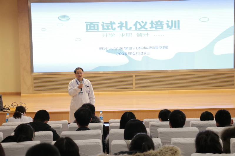 腊梅于隆冬绽蕾,幽香悄然而沁人心脾。距离己亥猪年的春节仅有不到两周的时间,开春后,即将毕业的研究生和本科同学们也将面临升学、求职等面试。为了帮助同学们在面试中脱颖而出,1月23日下午,儿科临床医学院特邀请了来自苏州大学东吴商学院的汪晓媛副教授为同学们进行了专业的面试礼仪培训。