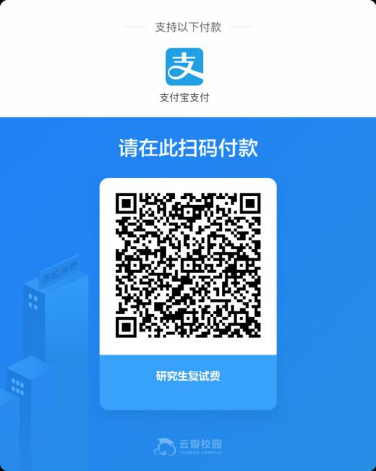 3.按照有关规定,在复试前交付复试费80元/人。考生须在复试前扫描下方二维码缴费。未按时缴费者,不得参加复试。缴费后因各种原因未参加复试者,已支付的复试费不予退还。