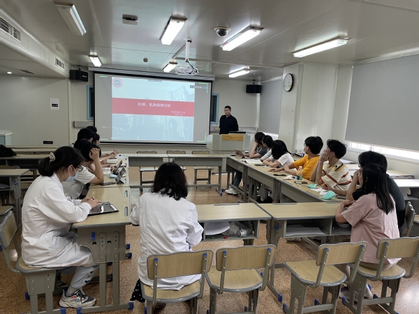 7月21日下午,一场精彩生动的病例分享活动在景德路院区举办。此次病例分享活动由学生自行组织,三人一组,寻找病例并查找资料,做汇报准备。会中,同学们对病例进行分享与讨论,最后由专科老师答疑。活动同时开启线上模式,院长助理、儿科临床医学院办公室主任黄洁、消化科主任金忠芹通过线上进行收听。消化科葛海霞老师则前往现场给学生进行答疑、指导。此次讨论活动,线上线下共计18名师生参与。