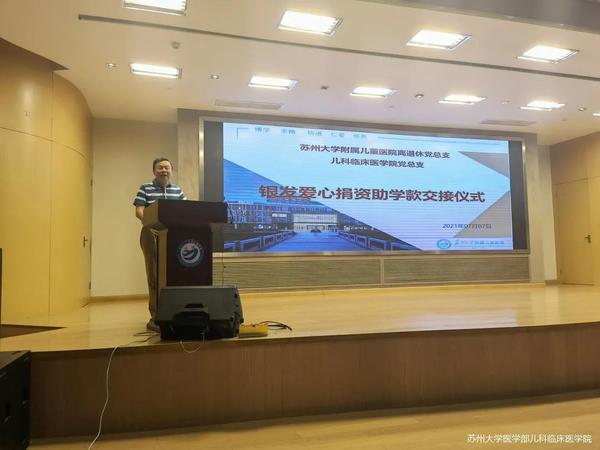 交接仪式上,离退休党员代表孙庆林发表感言:“我们一辈子工作在儿院,一辈子教育学生,今天虽然头发白了,退休了,但我们的余热未尽献,老骥不偷闲,始终以一个共产党员的标准严格要求自己,发挥着自身的余温,为社会积极做贡献,继续为教育出一份力,把老同志对党的教育事业的爱心延续下去。”同时他还和同学们分享了从医的心路历程,希望同学们坚定理想信念,珍惜来之不易的学习机会,在关爱中锤炼思想、努力学习,在拼搏中磨炼意志、刻苦成才,在感恩中奉献爱心、服务社会,早日成为国家和社会的栋梁。